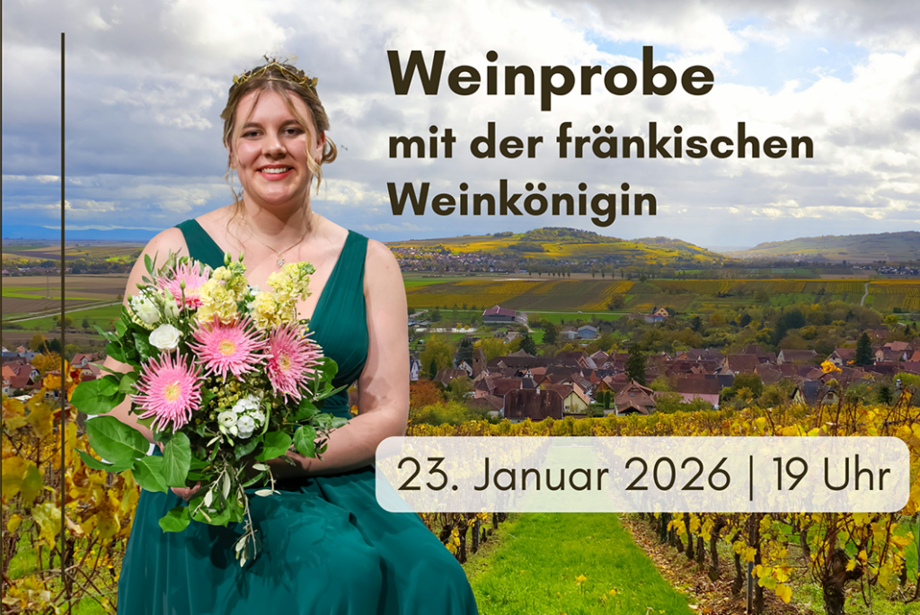 Am 23. Januar 2025 um 19:00 Uhr besucht uns die fränkische Weinkönigin Antonia Kraiß für eine Weinprobe.